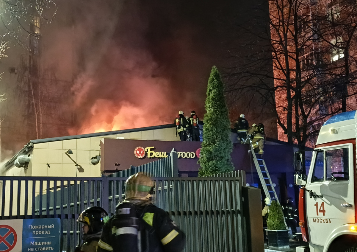 Столичные спасатели тушат пожар в кафе «Беш Food» на Бауманской улице