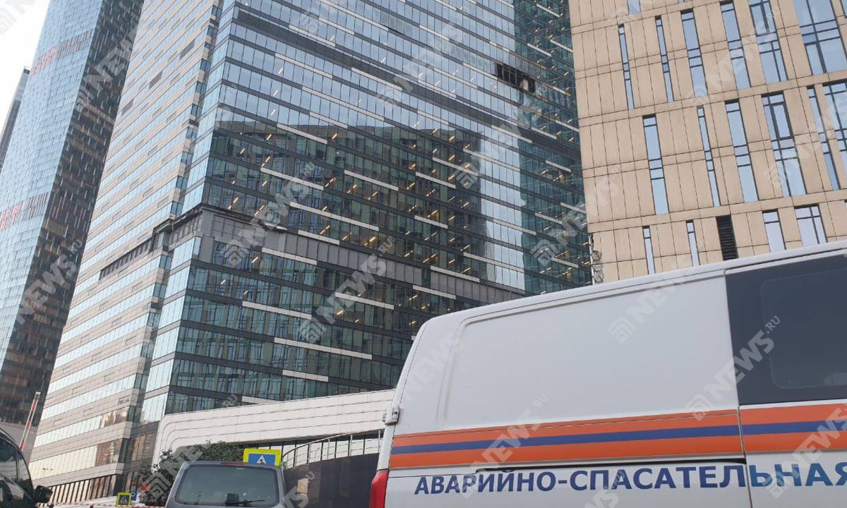 Появились эксклюзивные фото- и видеокадры с места попадания украинского БПЛА в одну из башен «Москва-Сити». На кадрах видны выбитые окна в районе 21-го этажа.