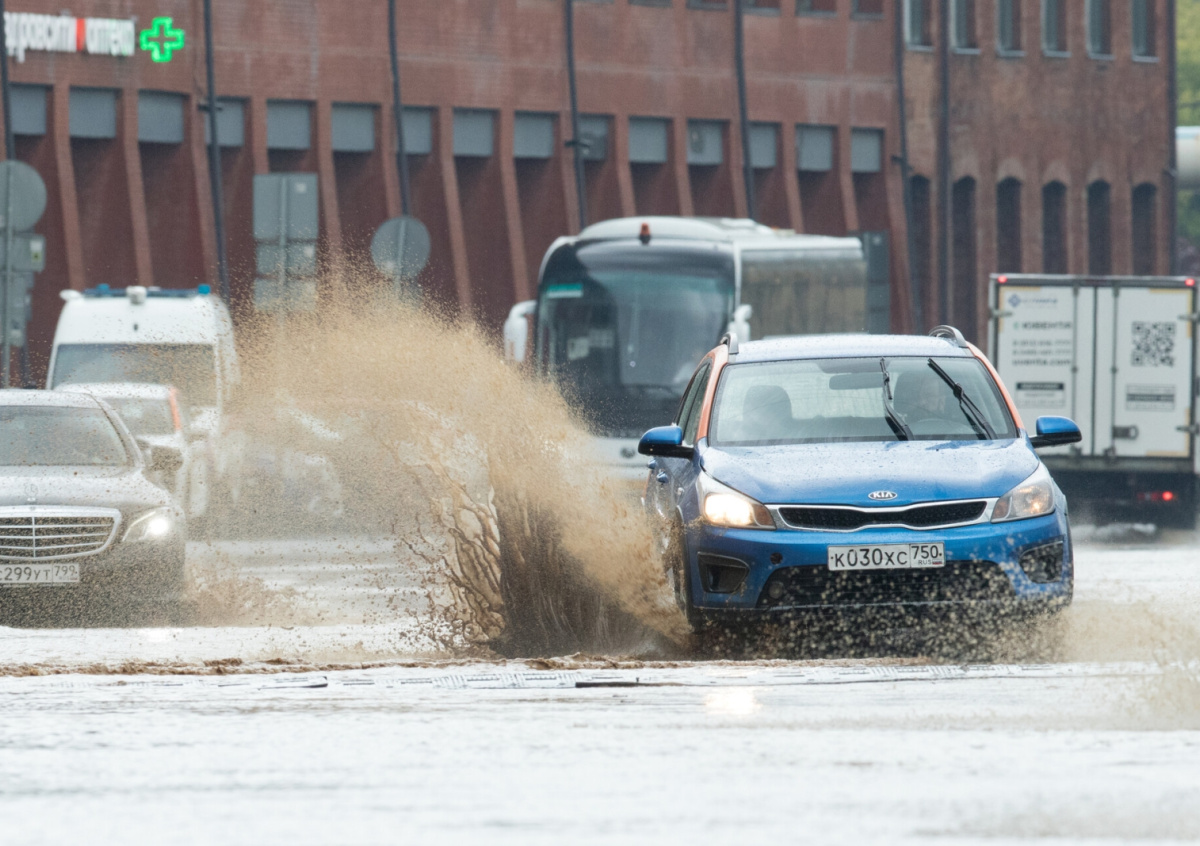 Появились кадры затопленных ливнем дорог в Москве