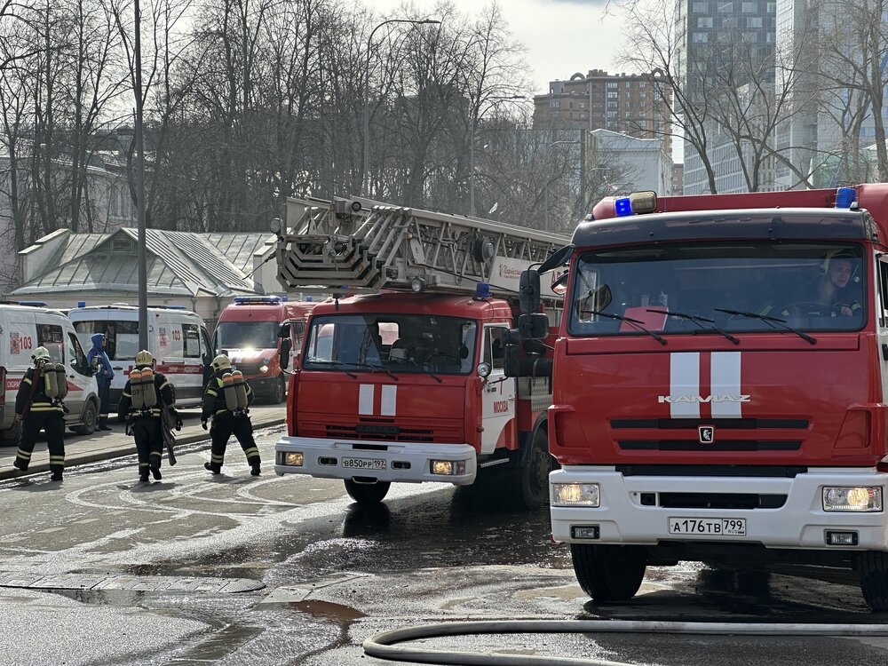 В 12:35 пожар был локализован, проводятся работы по полной ликвидации пожара. Пострадавших нет, обстановка на месте спокойная, — сообщили в МЧС Москвы.