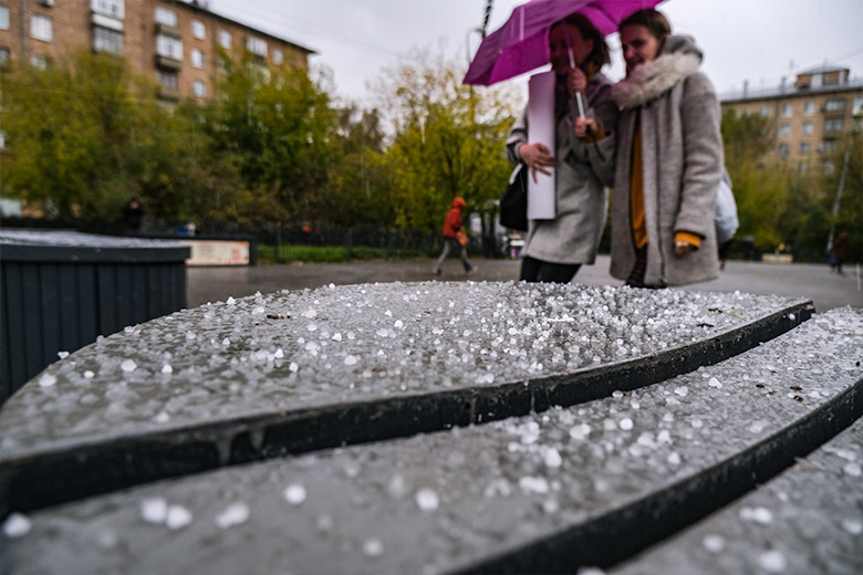 Град выпал в Москве в июне из-за перегретого воздуха, который поднялся в верхние слои атмосферы, заявила NEWS.ru ведущий специалист «Метеоновостей» Татьяна Позднякова. По ее словам, из-за столкновения с отрицательной температурой происходит конденсация влаги, а потом капли замерзают и укрупняются.