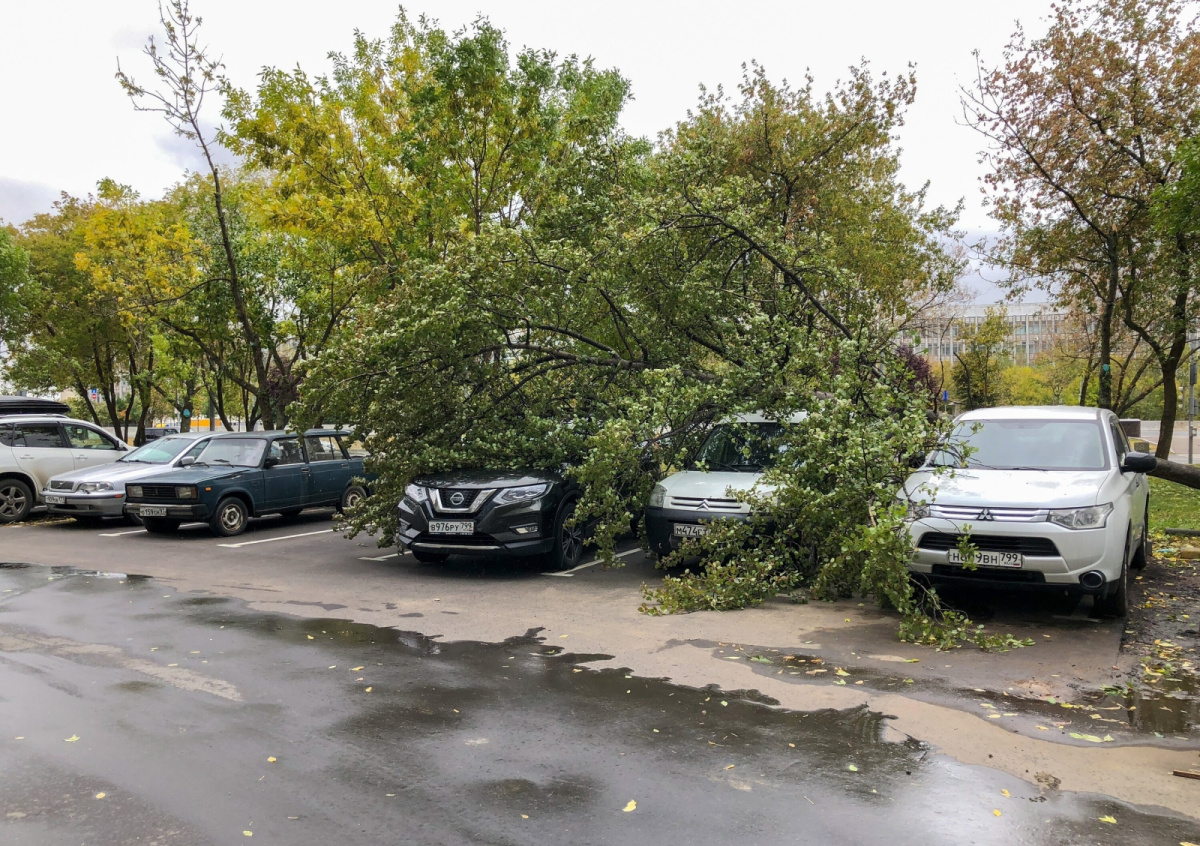 Сильный ветер в Москве повалил 33 дерева, повредив 14 автомобилей