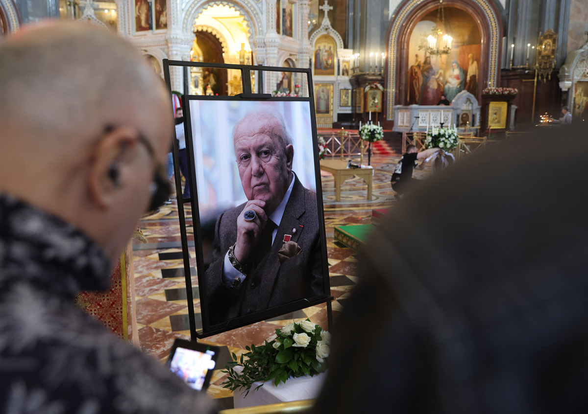 Ранее в храме Христа Спасителя началось прощание с Церетели. Люди принесли на церемонию подсолнухи — это его любимый цветок, к образу которого он часто обращался в своем творчестве. При этом скульптора похоронят в Грузии в субботу, 26 апреля.
