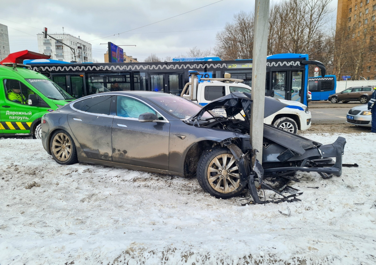 Tesla «поцеловалась» с фонарным столбом в Москве