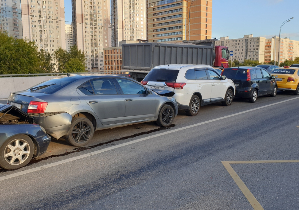 Из-за массовой аварии одна из четырех полос в сторону центра была перекрыта, позже в столичном дептрансе сообщили, что движение полностью восстановлено. Причины ДТП устанавливаются.