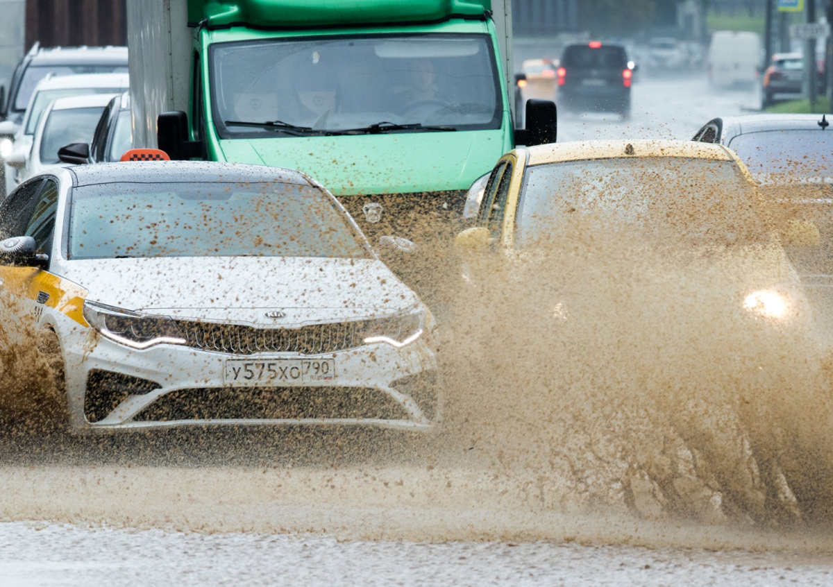Днем в столице из-за тропического ливня стало темно, как поздним вечером. На видео очевидцев показано темное небо и дороги, залитые водой настолько, что от едущих машин расходятся небольшие волны. По информации Telegram-канала «Первый Московский», в столице может выпасть до четверти месячной нормы осадков.