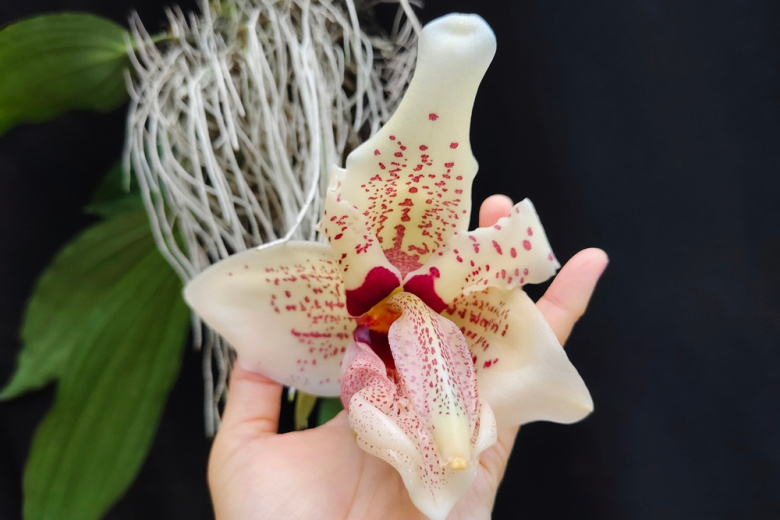 В Пальмовой оранжерее старейшего ботанического сада России впервые за сезон зацвела редкая орхидея стангопея глазчатая (Stanhopea oculata). Цветение длится всего одни сутки, поэтому сотрудники «Аптекарского огорода» называют событие живым чудом, — уточнили в пресс-службе.