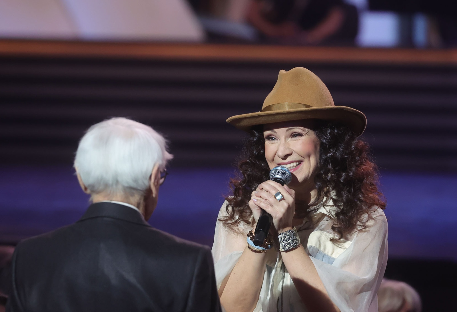 Елена Север выступает на юбилейном шоу «Про100 Зацепин» к 100-летию композитора Александра Зацепина в Большом зале Государственного Кремлёвского дворца в Москве