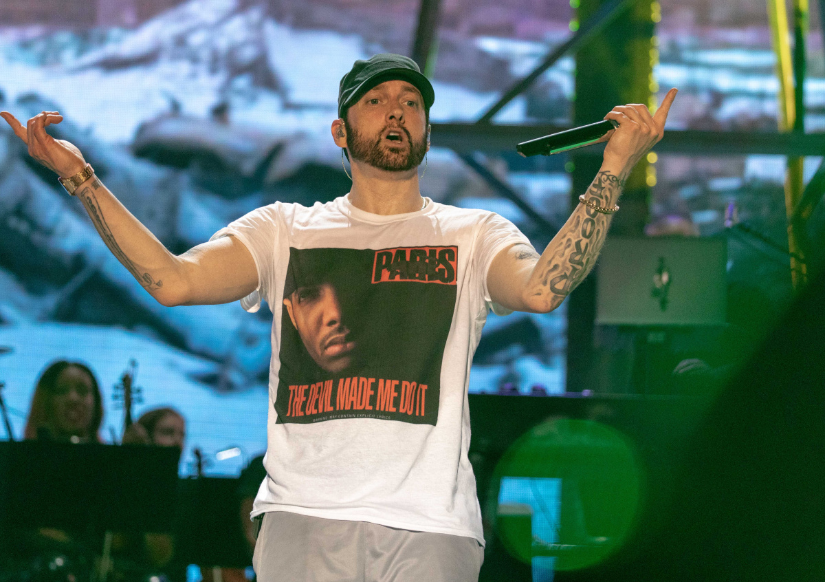 Композиция Godzilla записана совместно с рэпером Juice WRLD, который скончался в аэропорту Чикаго в декабре 2019 года. В ней Эминем произнёс 229 слов всего за 31 секунду, писал NEWS.ru.