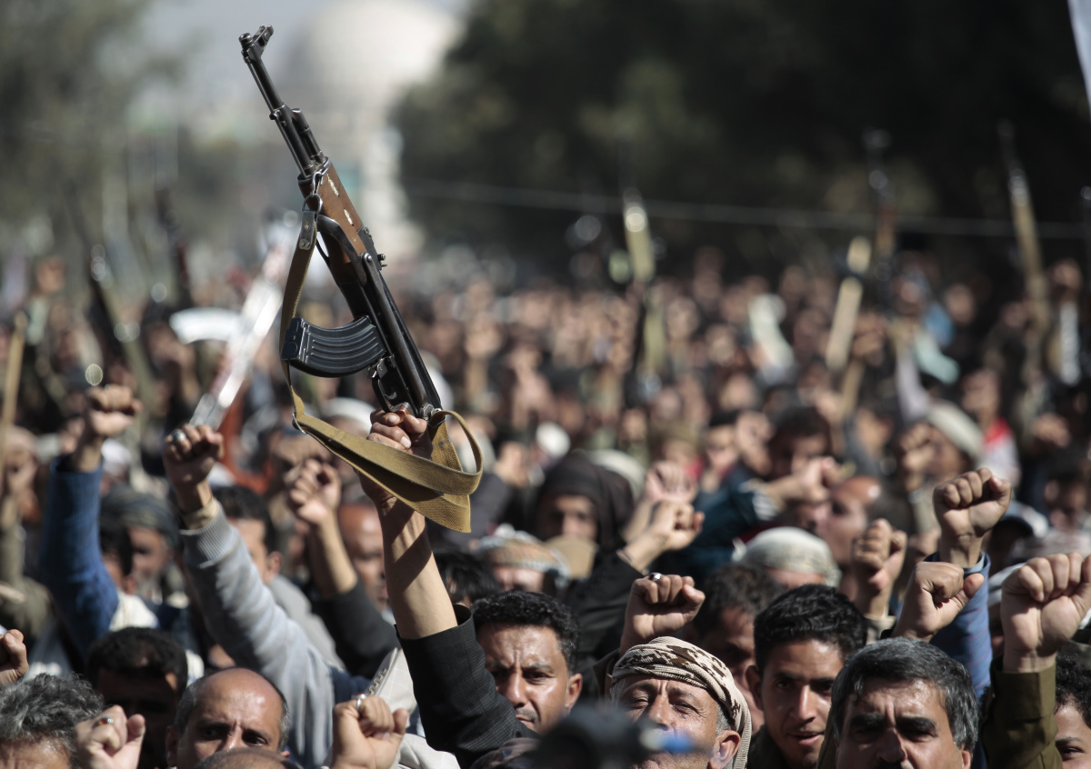 Боевики-хуситы протестуют против объявления США ополчения хуситов «террористической группой» в Сане. Йемен