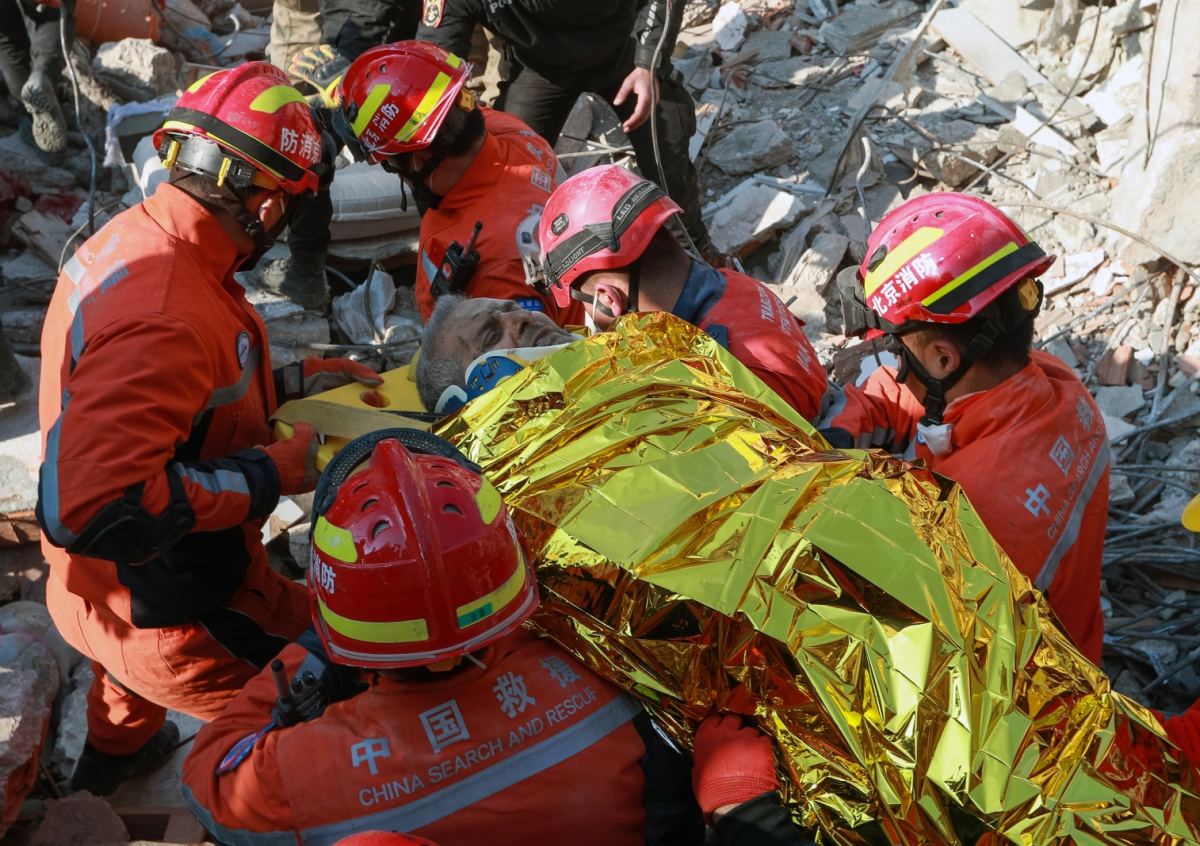 Китайские и турецкие спасатели перевозят пострадавшего от землетрясения в Антакье, южная провинция Хатай, Турция Китайские и турецкие спасатели перевозят пострадавшего от землетрясения в Антакье, южная провинция Хатай, Турция Фото: Mustafa Kaya/XinHua/Global Look Press