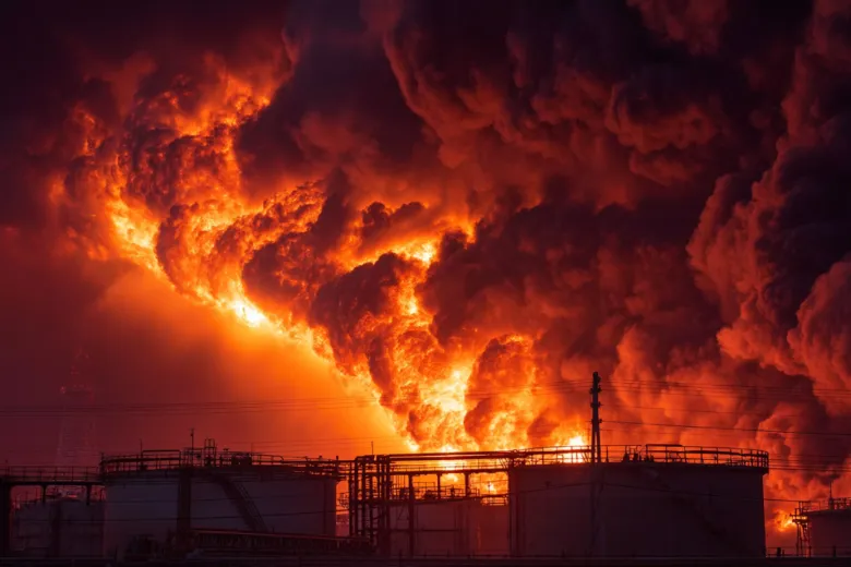 Мощный пожар вспыхнул на нефтебазе в ОАЭ