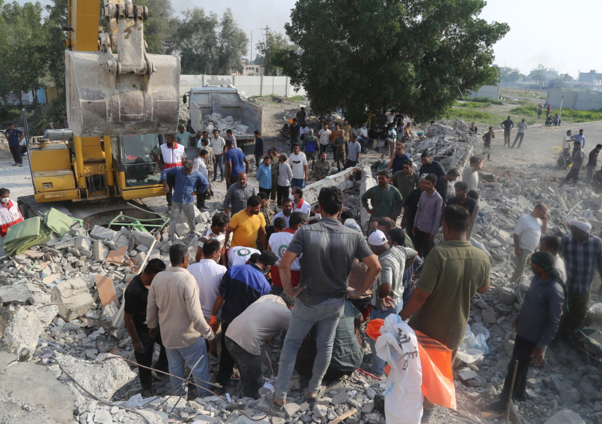 На церемонию прощания с жертвами удара пришли тысячи людей, в том числе глава Верховного суда Хормозган Моджтаб Гахремани, группа чиновников и множество близких погибших. Скорбящие, одетые в черное, несли портреты погибших. Колонну сопровождали люди с траурными стягами, участники шествия поочередно несли гробы.