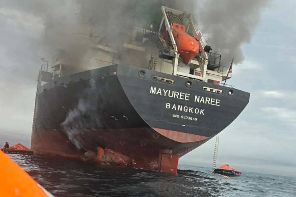 Некоторые поврежденные корабли оказались объяты пламенем, в то время как другие заволокло дымом. На нескольких судах заметны обгоревшие корпуса — следы уже потушенных пожаров.