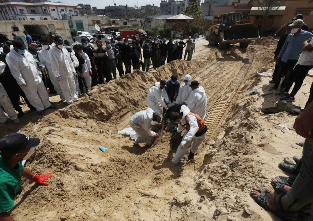 Во дворе больницы члены гражданской обороны и парамедики извлекли 180 тел, захороненных израильскими военными в этой братской могиле. Среди них есть пожилые женщины, дети и молодые мужчины, — сообщил корреспондент телеканала.