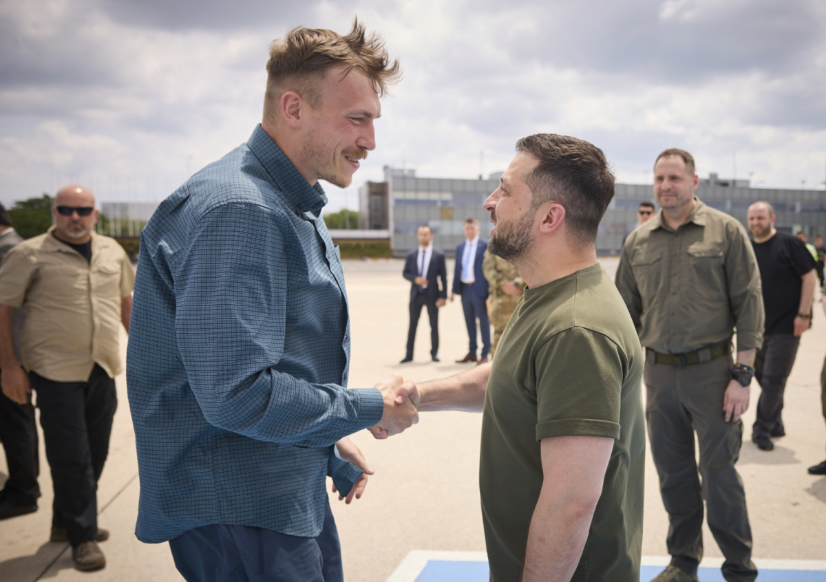 Стамбул, Турция: президент Украины Владимир Зеленский (справа) приветствует командира полка «Азов» подполковника Дениса Прокопенко Стамбул, Турция: президент Украины Владимир Зеленский (справа) приветствует командира полка «Азов» подполковника Дениса Прокопенко Фото: Ukraine Presidency/Ukraine Presi/Global Look Press