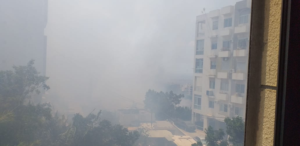 Ongoing fire in Al Fayadiyeh, near Saint Charles hospital.