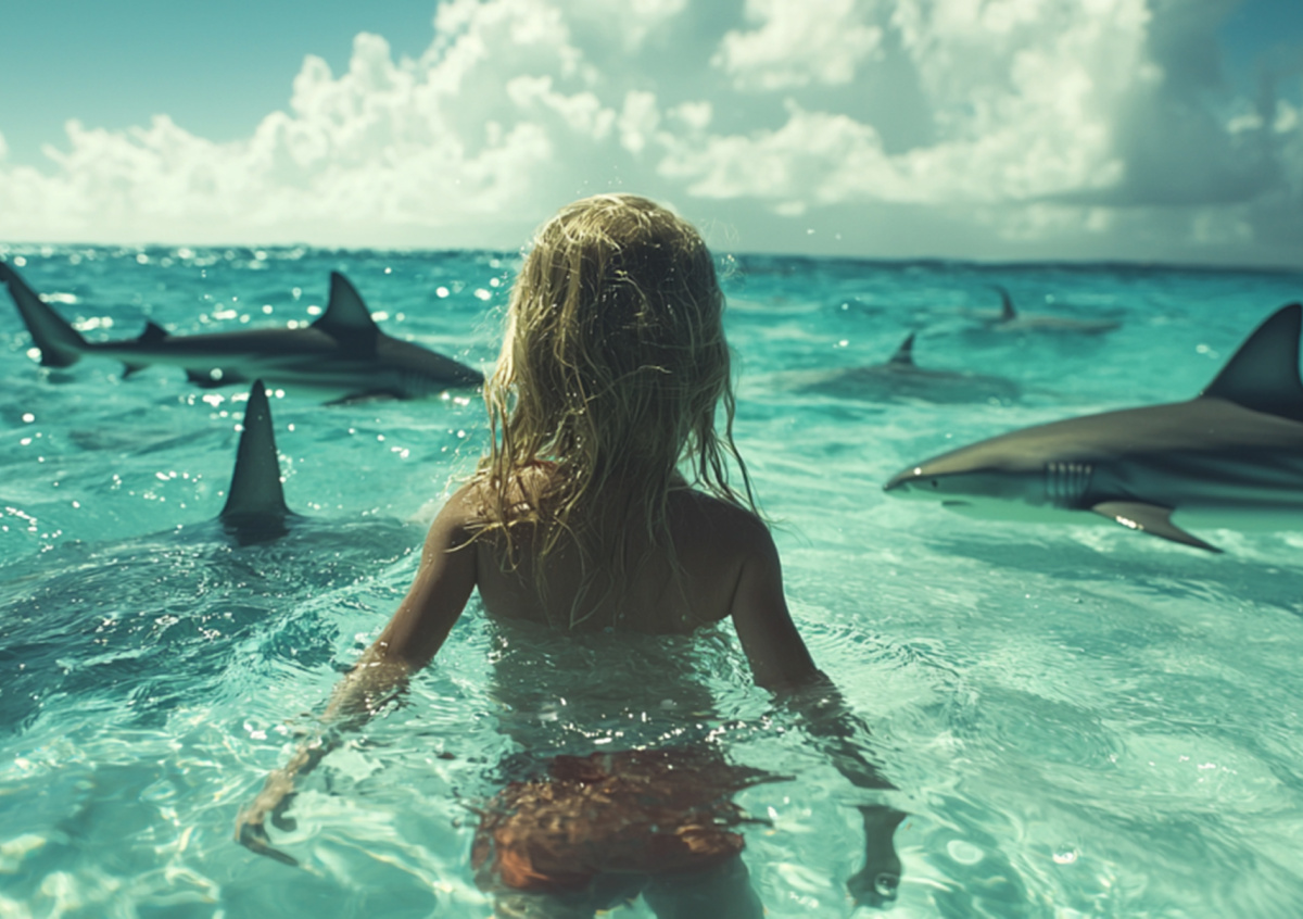 На представленных кадрах видно, как взрослый что-то кричит девочке, которая стоит по пояс в море в купальнике. Ребенок прижимает руки к груди, пока рядом плавают опасные хищники. Рядом находится мальчик, который кричит от страха. Остальных отдыхающих происходящее не смущает, они продолжают снимать все на смартфоны и не выходят из воды.