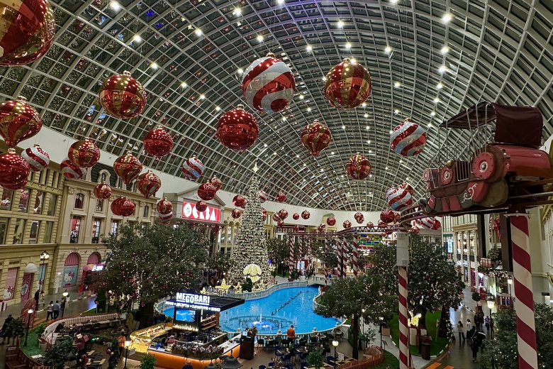 Зимнее настроение затронуло и тематические локации. Так, в тематической вселенной «Замок Снежной королевы» появились праздничные инсталляции: светящиеся сани, яркие подарочные композиции и другие арт-объекты. Пространство «Черепашки-ниндзя» украсили «снежными» сугробами, а 17-метрового Кинг-Конга в зоне «Маугли в стране динозавров» нарядили в новогоднем стиле.