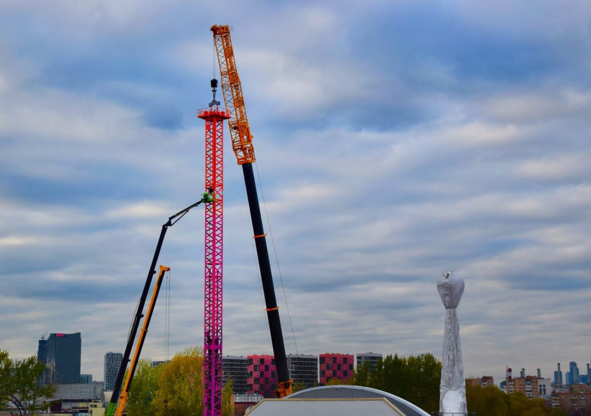 На территории культурно-развлекательного кластера «Остров Мечты» начался монтаж аттракциона «Воздушная вертикаль» — 68-метровой вращающейся башни падения. Работы проводят в рамках строительства масштабного открытого парка развлечений.