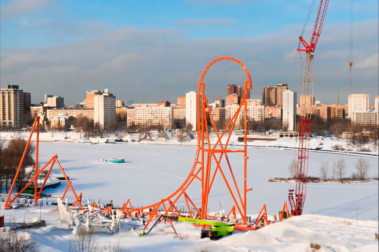 В настоящий момент установлены опорные конструкции вертикального подъема и первой петли, выполняется установка частей трека для этих элементов. После установки данных частей аттракциона будут собираться элементы с противоположной стороны. Общая готовность аттракциона составляет 30%, — рассказал технический директор «Острова Мечты» Глеб Пауль.