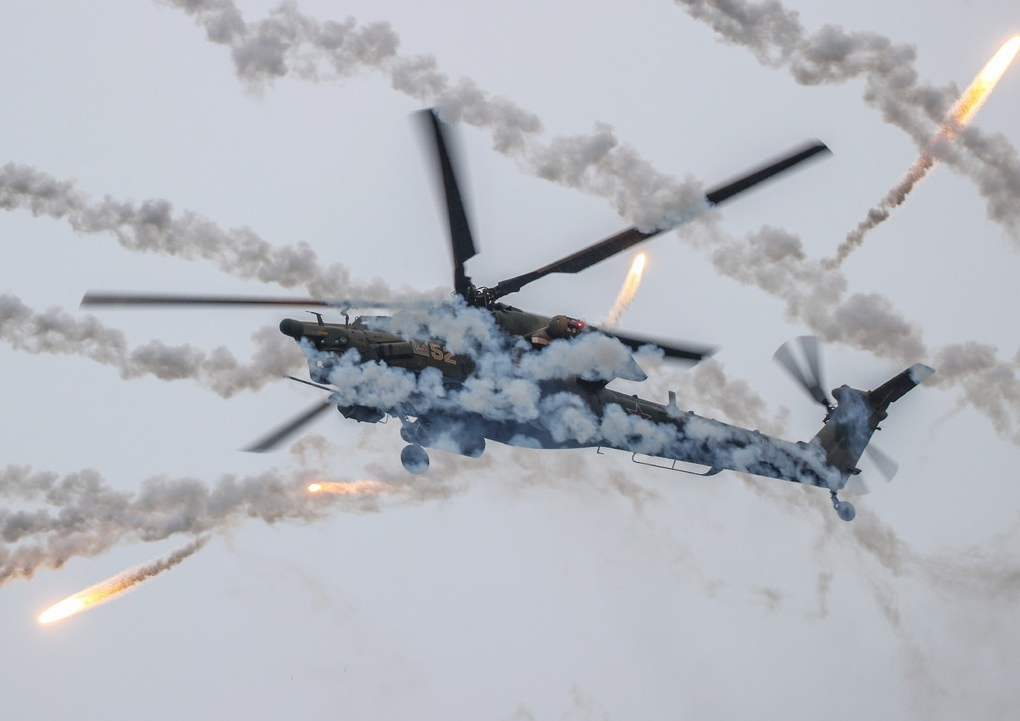 Российский экипаж вертолета Ми-28НМ поразил скопление живой силы и бронетехники Вооруженных сил Украины в курском приграничье, передает пресс-служба Минобороны РФ. По данным ведомства, все цели в результате боевого вылета были уничтожены.