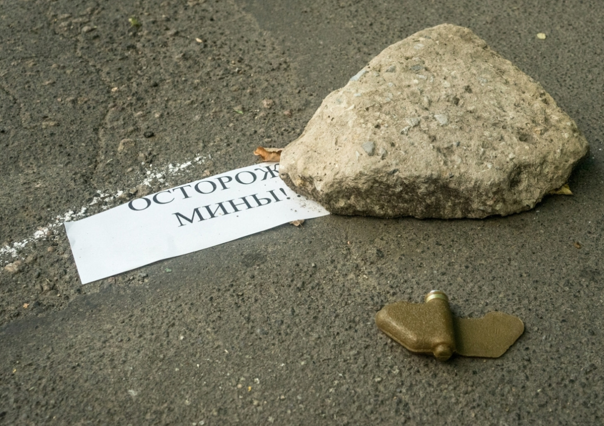 Осторожно, мины. <...> Найди мину «Лепесток» на рисунке. Раскрась ее и зачеркни красным цветом. Определи, какую ошибку допустил художник, изображая лето, — гласит одно из заданий.