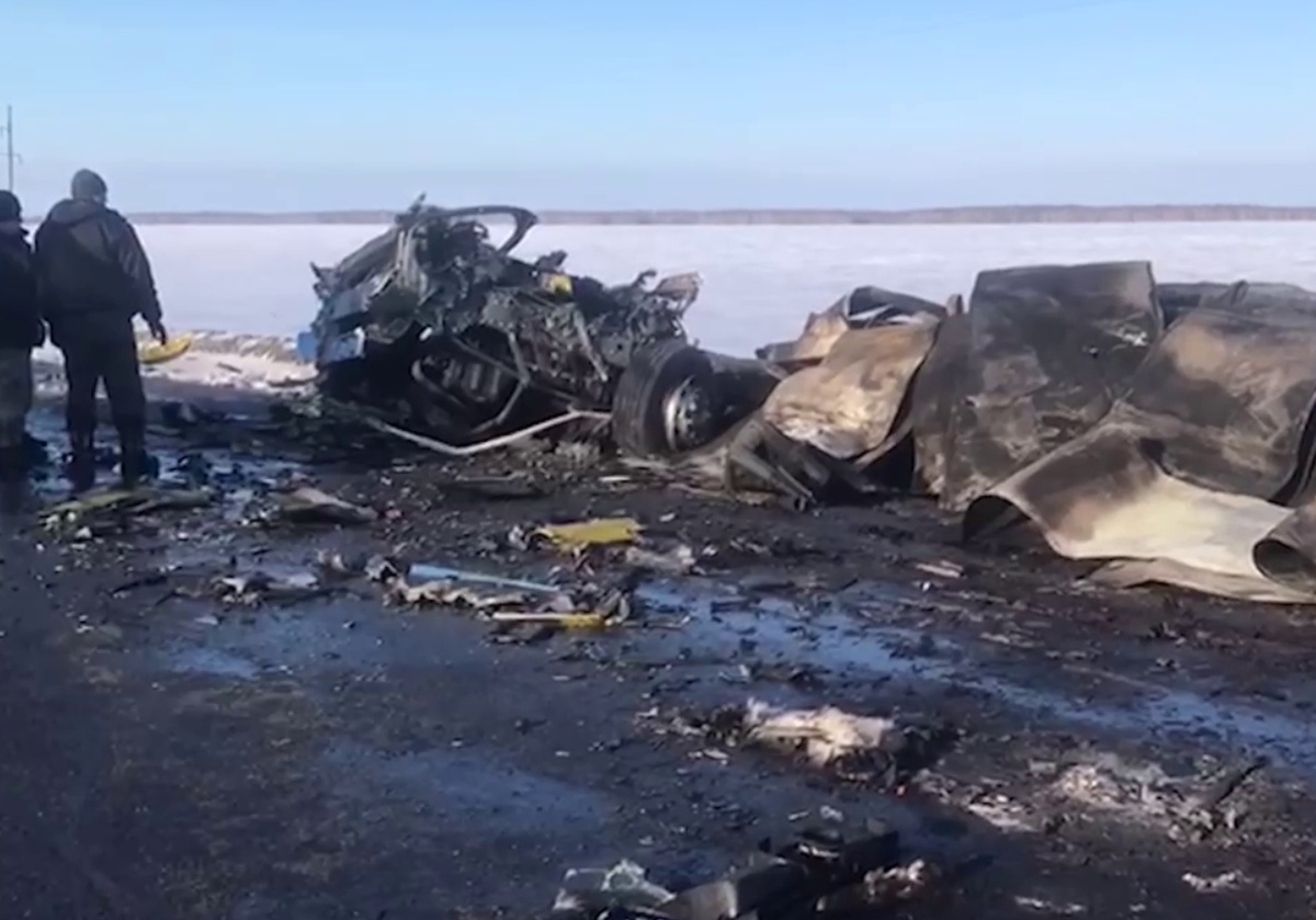 Авария произошла на 565-м километре автодороги Тюмень — Омск. После столкновения автомобили загорелись. По предварительной версии следствия, причиной ДТП мог стать разрыв переднего колеса одного из грузовиков. Следователи возбудили уголовное дело по статье «Оказание услуг, не отвечающих требованиям безопасности жизни и здоровья потребителей». Среди погибший есть подростки. Один 15-летний школьник доставлен в больницу.
