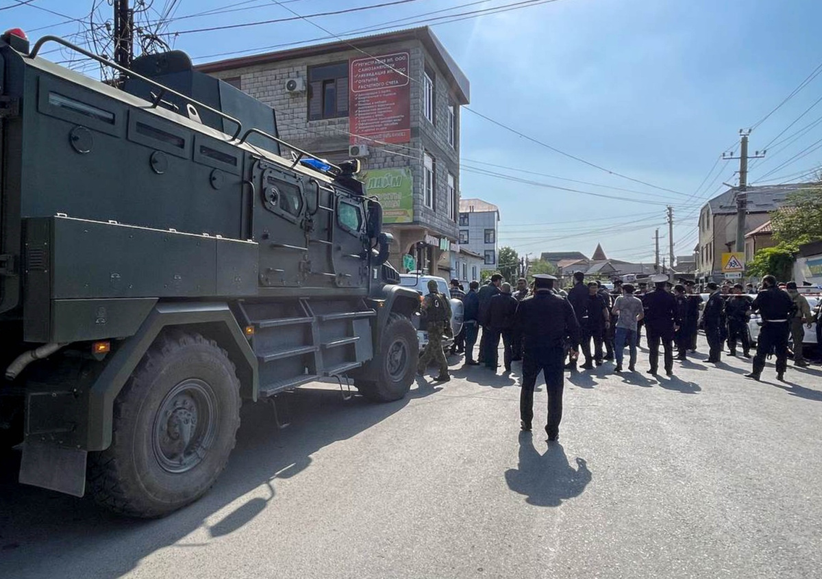 Обстановка на месте нападения на полицейских в Махачкале Обстановка на месте нападения на полицейских в Махачкале Фото: Гянжеви Гаджибалаев/ТАСС
