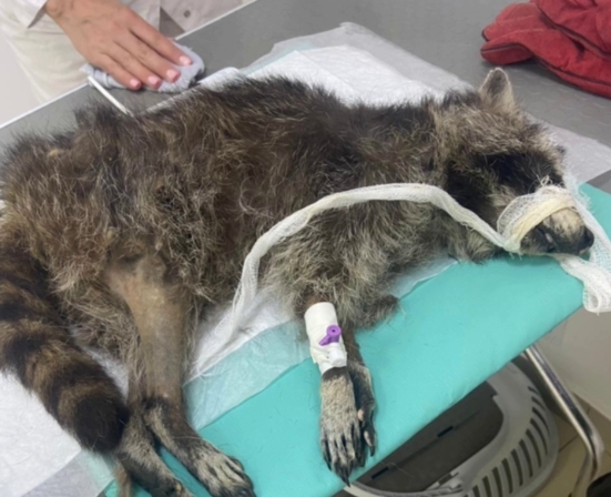 Чтобы поставить катетер еноту, врачи искали вену более получаса. Сосуды очень тоненькие и хрупкие. У енота диагностировали цирроз печени и онкологию на печени, катаракту на обоих глазах и практически полную глухоту. Енот оказался в мусорке просто обреченным на скорую гибель при таком состоянии, — рассказали в питомнике.