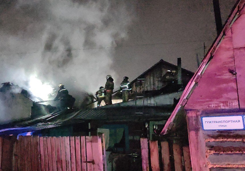 ЧП произошло в ночь с 14 на 15 ноября на улице Гужтранспортной. Огнем были охвачены деревянный одноэтажный дом и хозяйственные постройки во дворе, присутствовала угроза распространения пламени на соседние строения.