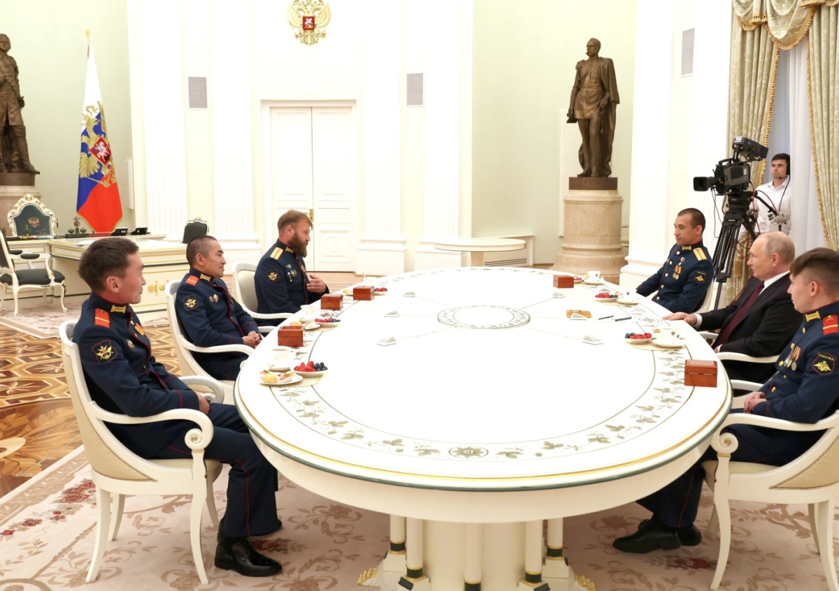 Владимир Путин с военнослужащими 127-й мотострелковой дивизии пятой общевойсковой армии Вооружённых сил России Владимир Путин с военнослужащими 127-й мотострелковой дивизии пятой общевойсковой армии Вооружённых сил России Фото: kremlin.ru