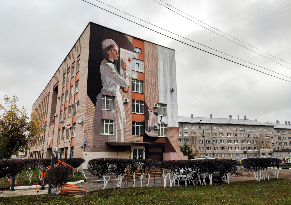 Изображение медсестры появилось на фасаде корпуса медицинского университета в Рязани. Высота рисунка составляет 20 м, а ширина — 15,5 м.