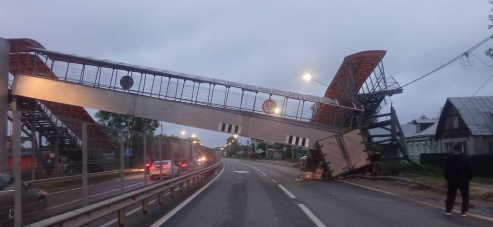 Во Владимирской области в результате ДТП обрушился надземный пешеходный переход через федеральную трассу М-7 «Волга», сообщила пресс-служба регионального УМВД в «ВКонтакте». По данным ведомства, ночью 21 июня в одну из опор влетел грузовик.