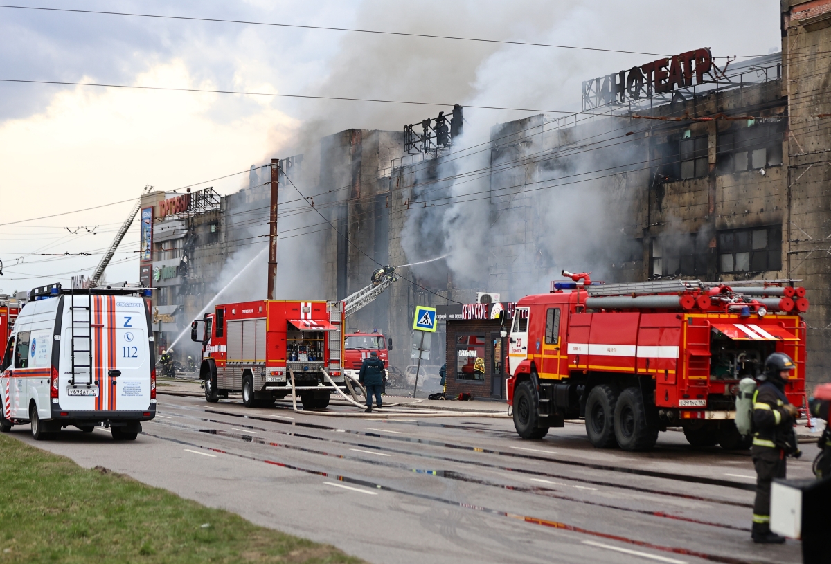 Сотрудники противопожарной службы МЧС РФ на месте пожара в торговом центре «Гиант» в Калининграде Сотрудники противопожарной службы МЧС РФ на месте пожара в торговом центре «Гиант» в Калининграде Фото: Александр Подгорчук/РИА Новости