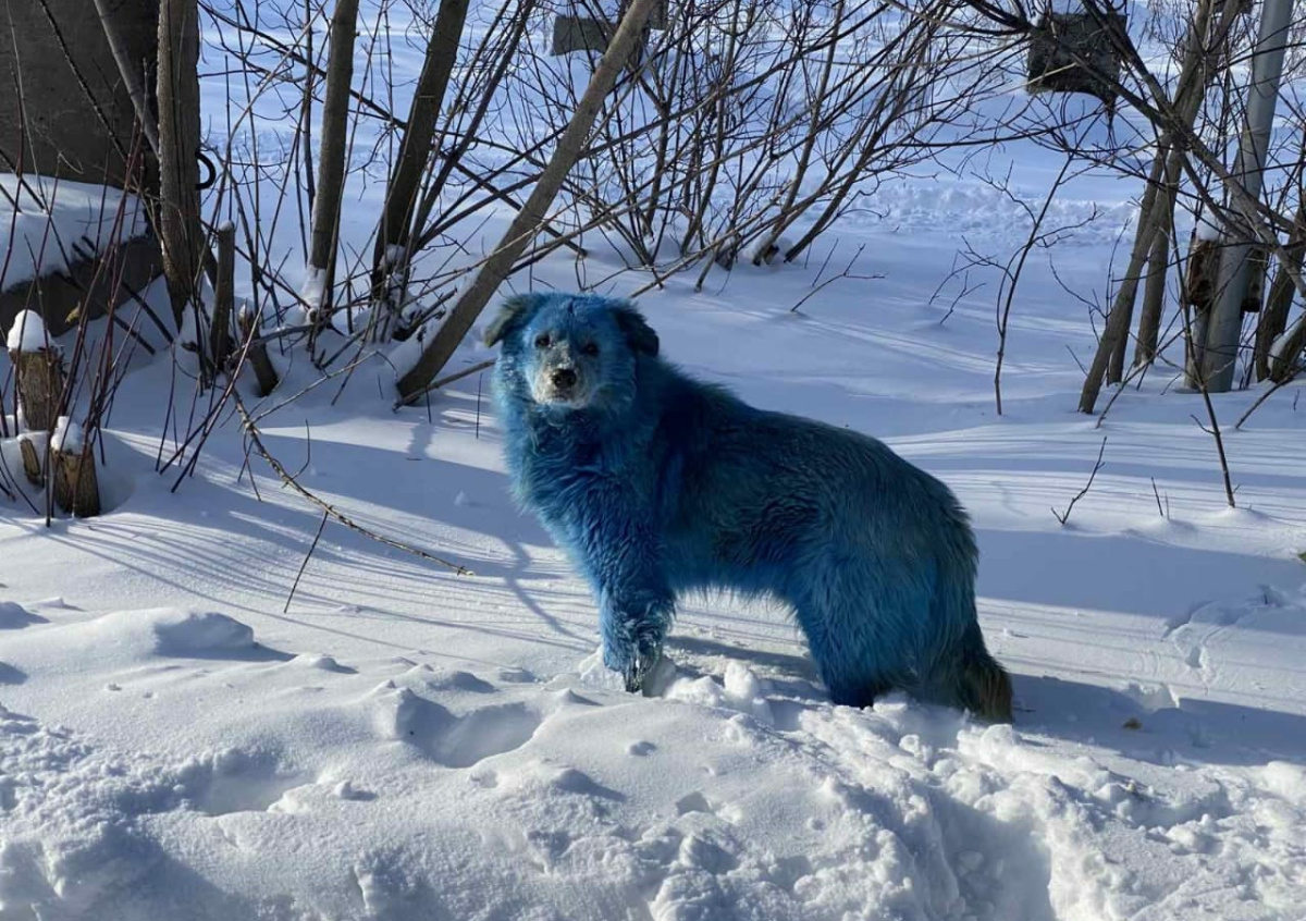 Очевидцы сообщили о появлении в городе Дзержинске Нижегородской области собак, окрашенных в голубой цвет. Руководство местного предприятия сообщило, что они могли «испачкаться» в химикатах.