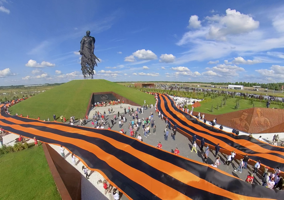 Активисты движения «Волонтёрская рота» развернули самую большую в мире георгиевскую ленту у памятника Ржевского мемориала советскому солдату. Об сообщил руководитель всероссийского движения Антон Демидов.