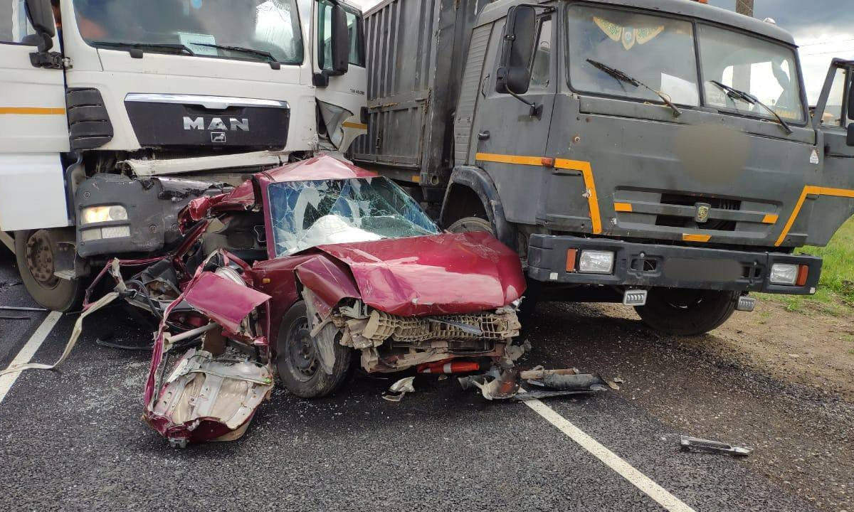 Как отмечается, фура MAN врезалась в КамАЗ. По инерции тот протаранил микроавтобус, который наносил дорожную разметку, и Daewoo Nexia. Погибшая была пассажиркой легковушки.