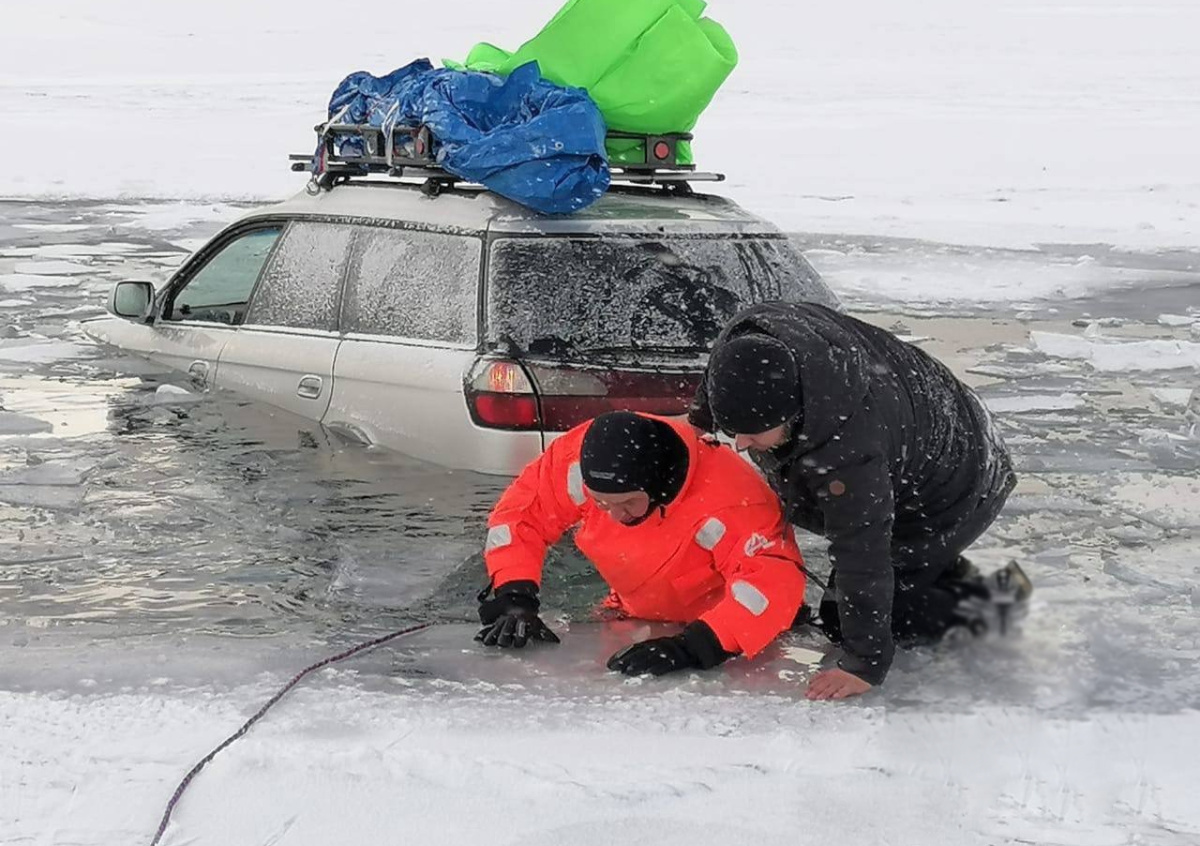 Машина с туристами провалилась под лед на Байкале