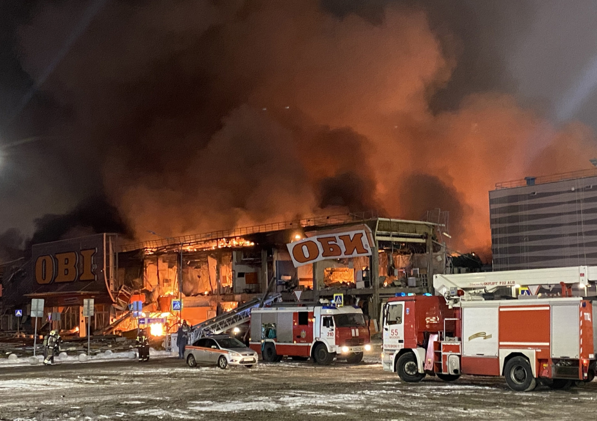 Пожар начался в магазине OBI в подмосковном торговом центре «Мега Химки» около шести утра. В тушении были задействованы 30 человек и девять единиц техники. Кровля загорелась на площади 150 метров.
