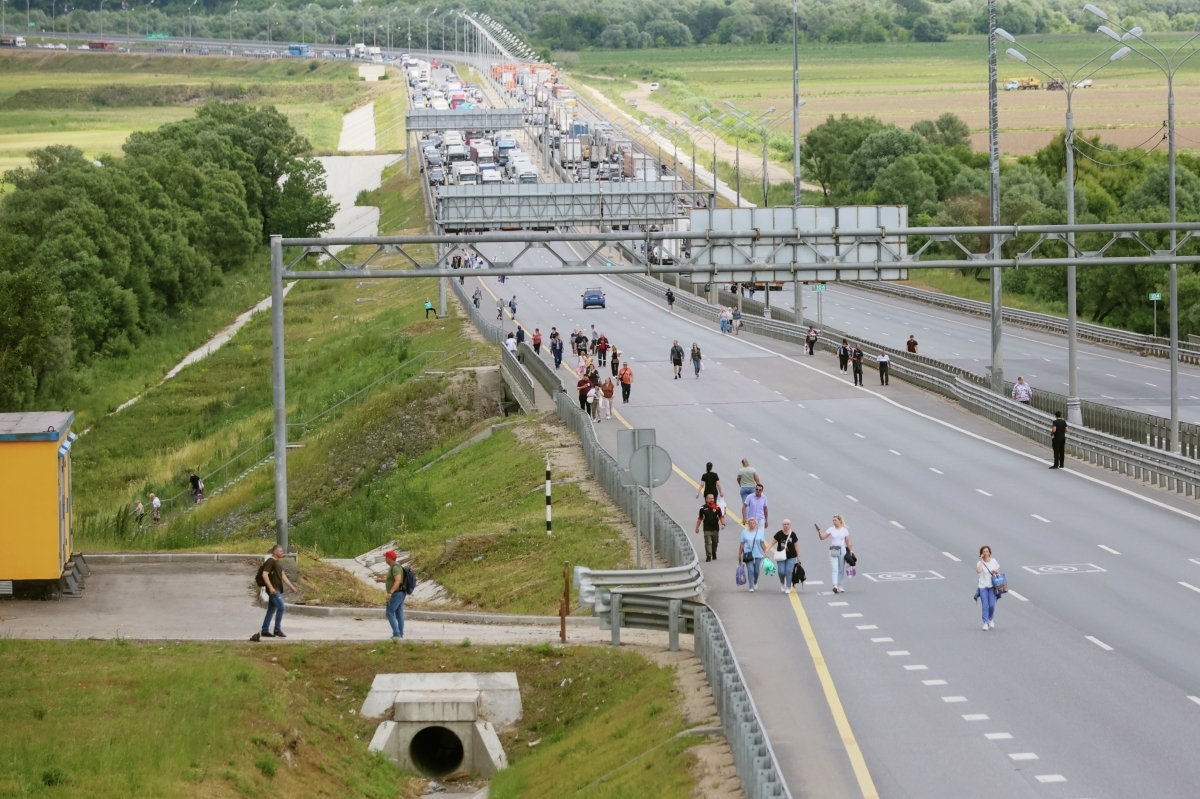 Все стоит и не едет — это из Москвы. Люди из машин вышли, стоят. А впереди — колонна ЧВК «Вагнер», — рассказал собеседник портала.