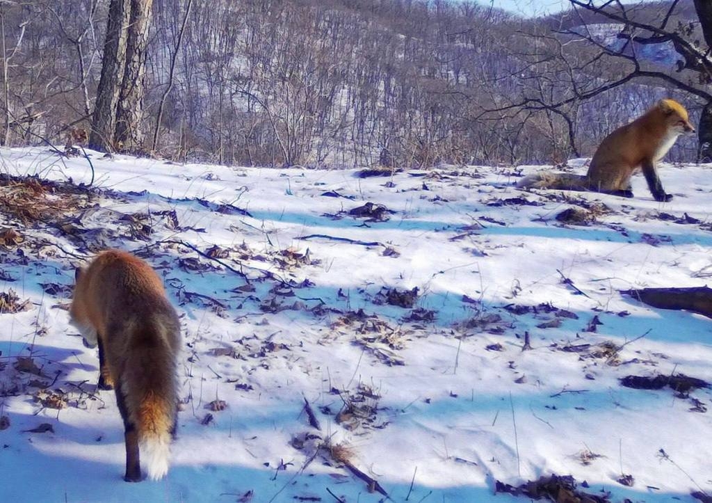 На территории «Земли леопарда» обитают четыре вида кошачьих — это дальневосточный леопард, амурский тигр, рысь и дальневосточный лесной кот. Лисица по своим размерам ближе всего к лесному коту. Питается она мышами и маньчжурскими зайцами, охотится ей помогает острый слух.