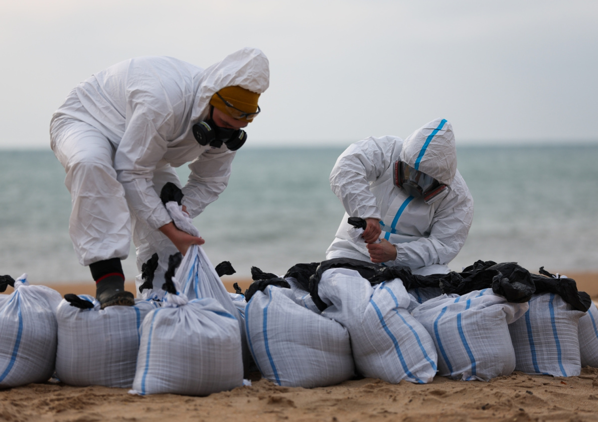 Ранее в оперштабе Кубани сообщали о шторме, произошедшем в ночь на 1 января. В результате него на пляжи Анапы вынесло еще больше мазута. На некоторых участках наблюдаются небольшие скопления мазута, однако есть и крупные. В Темрюкском районе повторных загрязнений выявлено не было. Протяженность территории, где проводятся работы по очистке, составляет 63 километра.
