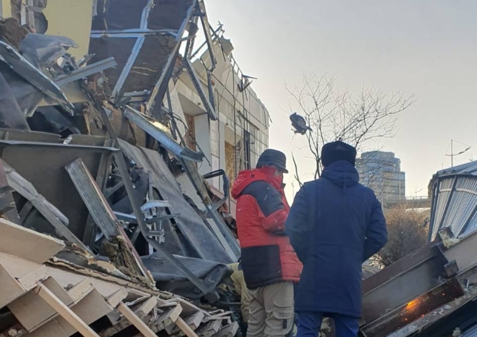 Обломки рухнувшего здания засыпали дорогу во Владивостоке