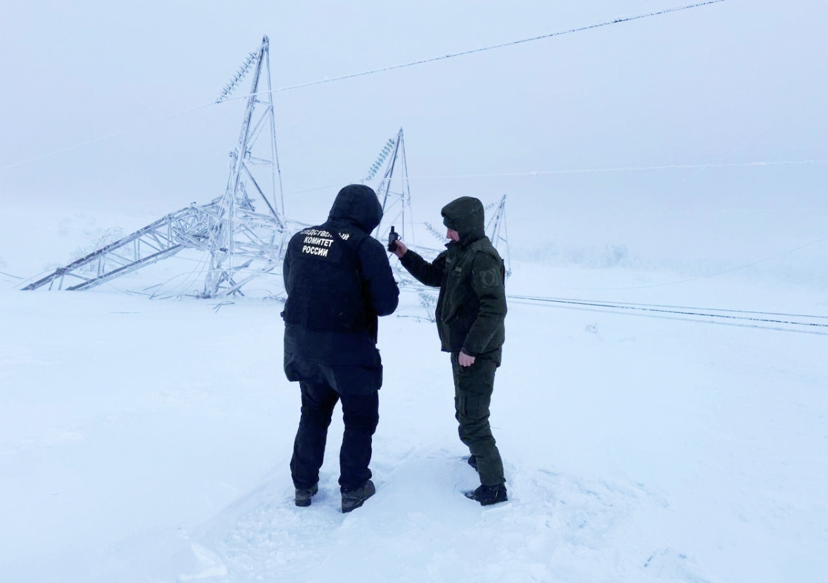 Сотрудники СК РФ у обрушенной опоры линии электропередачи в Мурманске Сотрудники СК РФ у обрушенной опоры линии электропередачи в Мурманске Фото: СК РФ/РИА Новости