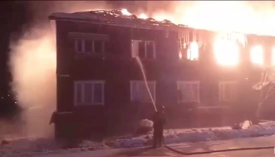 Опубликовано видео пожара в двухэтажке под Иркутском