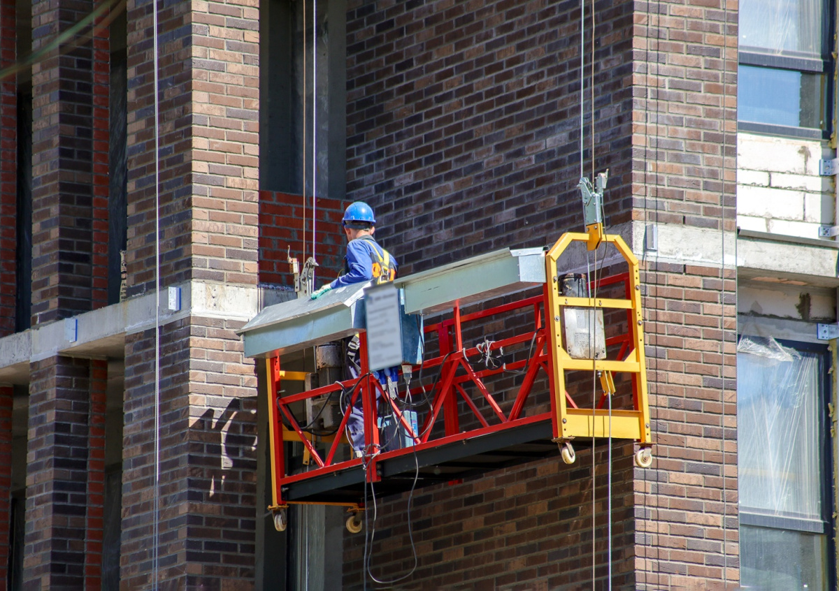Опубликованы кадры падения люльки с рабочими на стройке