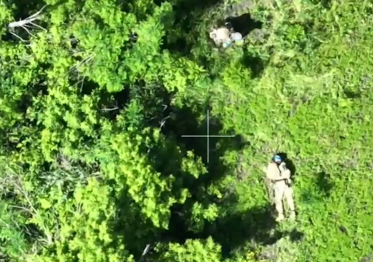 Опубликованы кадры удара беспилотника по затаившимся в лесу бойцам ВСУ