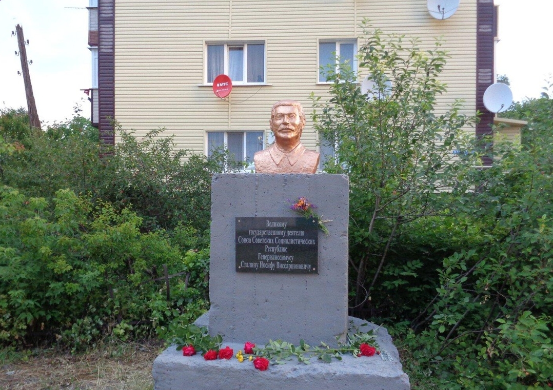Автор памятника — местный скульптор Борис Ташев. Бюст сталина он установил возле своего дома ещё 20 июня. Его открытие он хотел приурочить к годовщине начала Великой Отечественной войны. В тот же день к скульптуре стали приходить люди и возлагать цветы, а автора монумента вызвали в полицию. Оказалось, он не согласовал установку бюста с муниципалитетом, памятник демонтировали на следующий день.