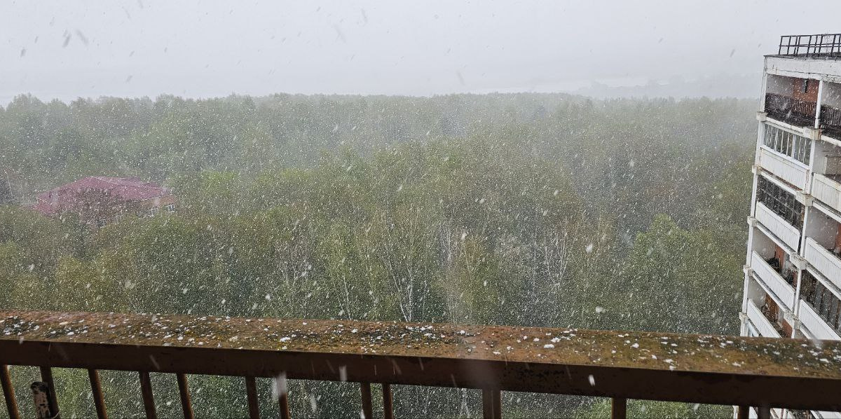 Жители Московской области делятся в социальных сетях кадрами метели, которая накрыла регион в воскресенье, 27 апреля. На видео, опубликованных в Telegram-канале «Осторожно, Москва», запечатлены крупные хлопья снега, накрывающие дороги, автомобили и крыши домов.